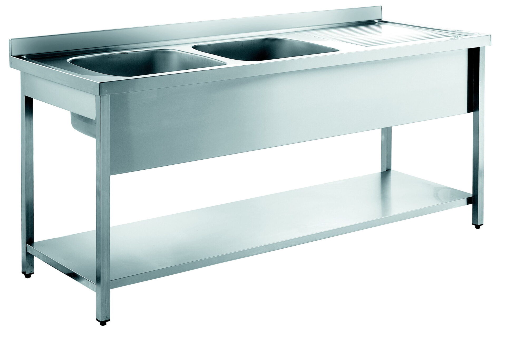 Arbejdsbord i rustfrit stål med underhylde og 1 vask